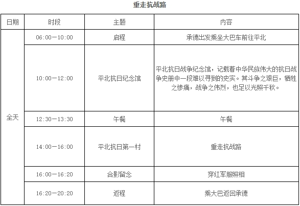 6:00-10:00:承德发车前往平北抗日纪念馆