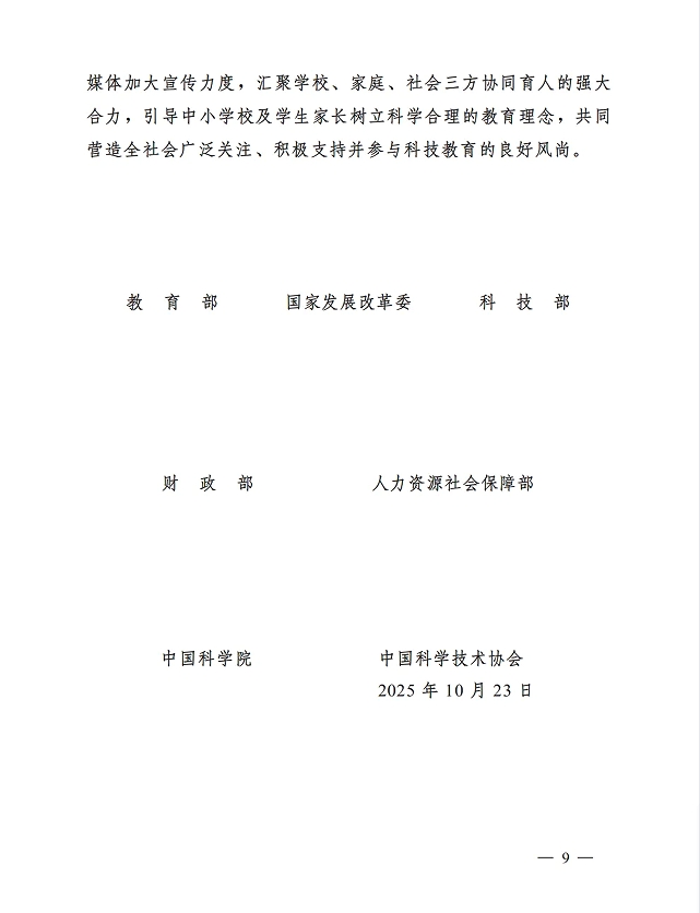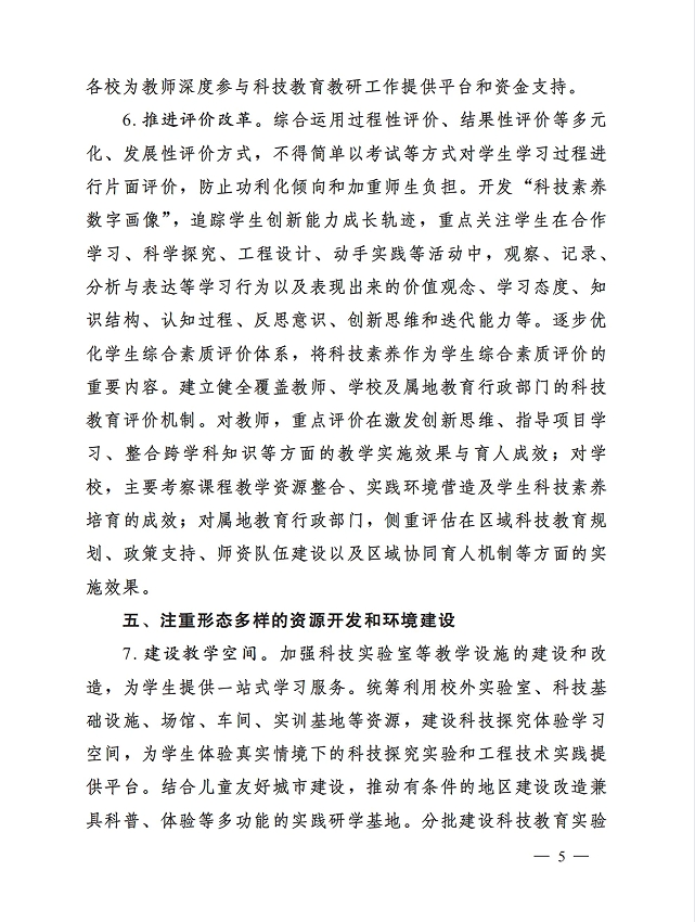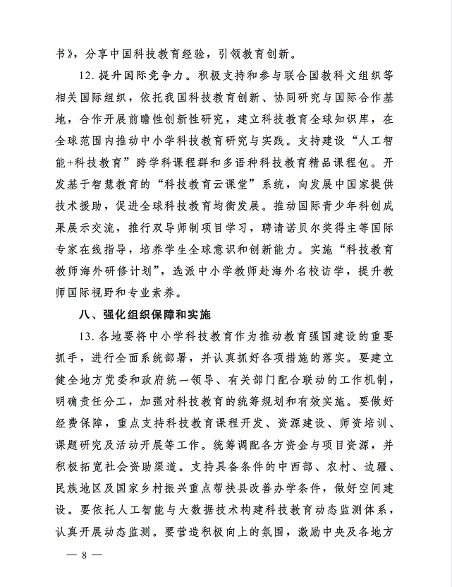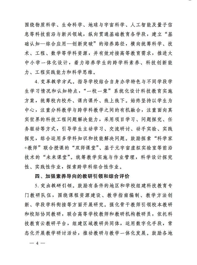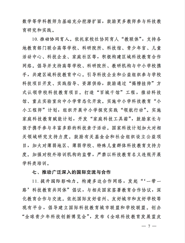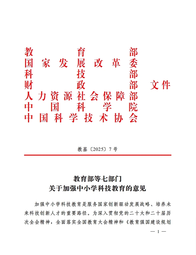 教育部等七部门关于加强中小学科技教育的意见