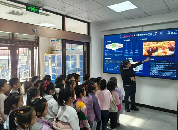图书馆初体验。学生在图书馆工作人员的带领下参观图书馆,开启雪假研学之旅。他们参观了少儿阅览区、电子设备等功能区域,学习使用自助借还机,熟悉借阅流程,了解如何检索图书,现场体验“找书、借书”的完整流程,培养小学生自主阅读与图书检索能力。